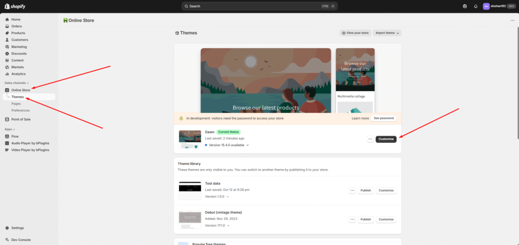 First, go to your Online Store → Theme Customize page.