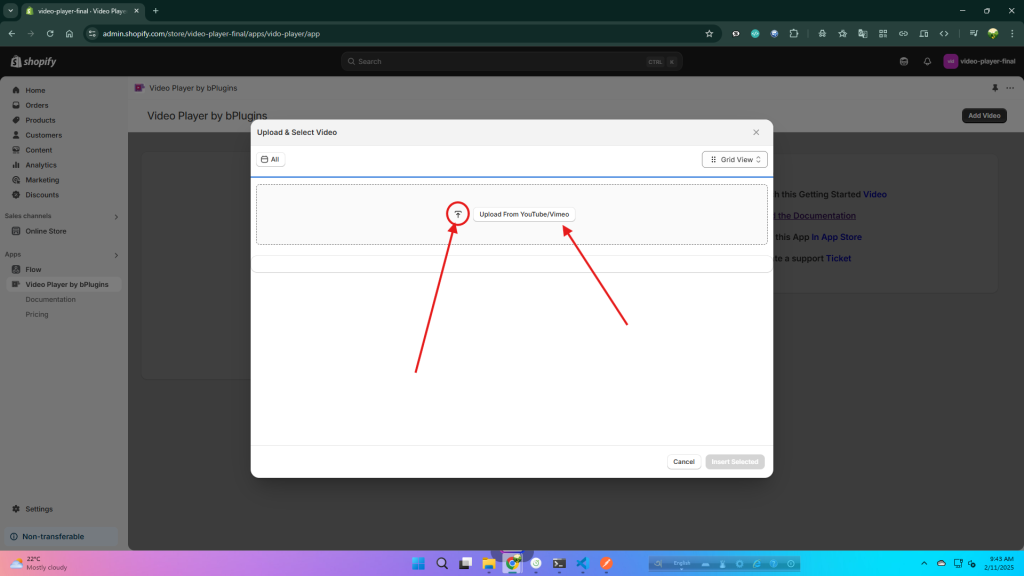 - Click on “Upload From YouTube/Vimeo” Button and enter the YouTube/ Vimeo video URL